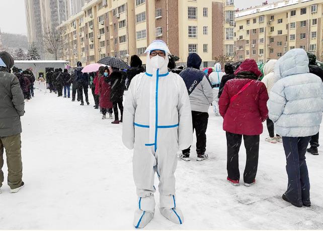 漫天風(fēng)雪,氣溫低至零下,依然擋不住廣大志愿者抗疫的腳步。11月30日以來,集團(tuán)黨員干部職工全力以赴投身在抗疫第一線,在抗疫戰(zhàn)場上“連軸轉(zhuǎn)”。有的干部職工雖然不是黨員,卻在關(guān)鍵時刻沖鋒陷陣,第一時間到社區(qū)報到,支援抗疫工作。有的黨員從12月1日晚上8點就開始在社區(qū)卡口執(zhí)勤,一直干到次日凌晨1點,寒風(fēng)刺骨卻無怨無悔。有的黨員老公在單位值守,自己一個人在家照顧孩子,為了支援社區(qū)疫情防控,早上5點就把孩子叫醒讓對門鄰居幫忙照看,義