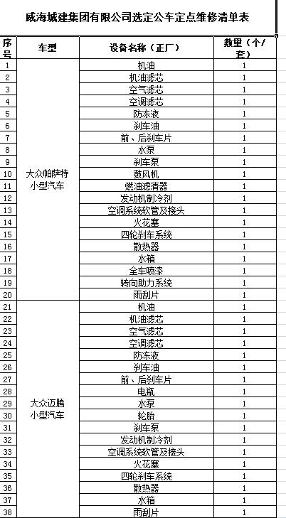 (4)采購內(nèi)容:威海城建集團10輛公車定點維修保養(yǎng)等服務(wù)內(nèi)容,采購清單詳見附件。